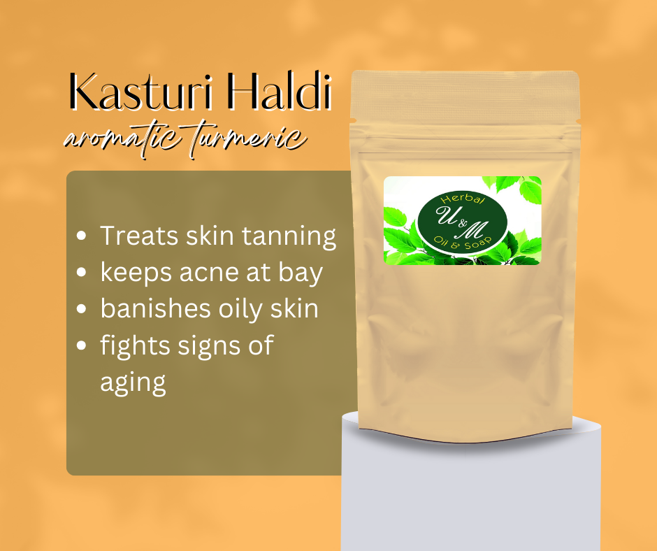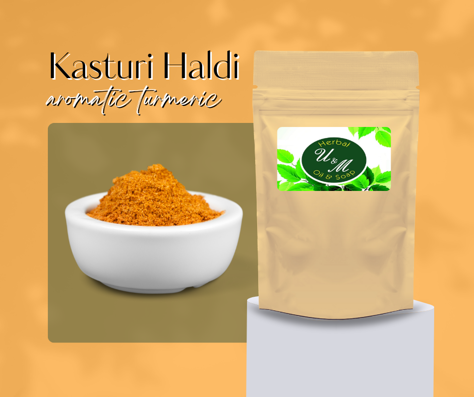 Kasturi Manjal, also known as curcuma aromatic, that is being widely used as a cosmetic herb in many parts of South Asia. It is believed that kasturi manjal is the best kind of turmeric for external applications since unlike regular turmeric, it doesn’t stain your skin.