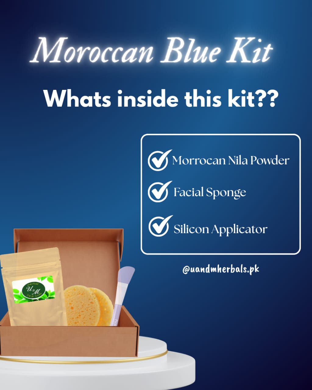 Unveil refreshed, radiant skin with our Moroccan Blue Kit, a calming blend of tradition and care. Featuring our signature Moroccan NILA Powder, along with a facial sponge and a silicone brush for smooth, mess-free application — this kit is designed for a complete home facial experience.